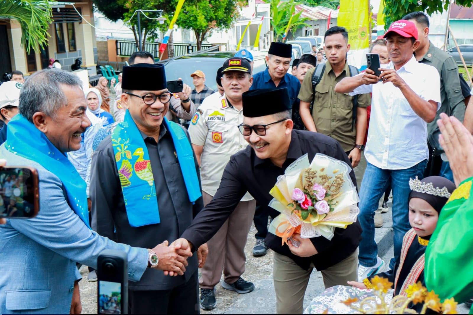 Penyambutan tersebut penuh dengan antusiasme, mengingat kunjungan Mendes PDT merupakan agenda perdana ke Kabupaten Banggai. Bupati Banggai didampingi oleh Bupati Banggai Kepulauan, Bupati Banggai Laut, Sekretaris Daerah Kabupaten Banggai, Kapolres Banggai, Kejari Banggai, serta Unsur Forkopimda Kabupaten Banggai.