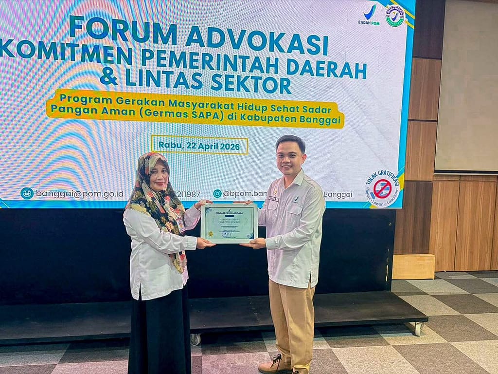 POLSUSWASKIANA – BANGGAI. Pemerintah Kabupaten Banggai guna menunjukkan komitmennya dalam memberikan dan mendukungan pelaksanaan Program Gerakan Masyarakat Hidup Sehat Sadar Pangan Aman (Germas SAPA) bersama Loka Pengawas Obat dan Makanan (Loka POM) Kabupaten Banggai melalui Forum Advokasi Komitmen Pemda dan Lintas Sektor yang digelar pada Rabu (22/4/2026) di Ruang Rapat Pahangkabotan, Kantor Bappeda.