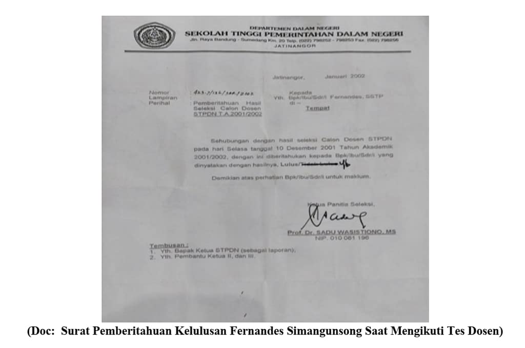 (Doc: Surat Pemberitahuan Kelulusan Fernandes Simangunsong Saat Mengikuti Tes Dosen)