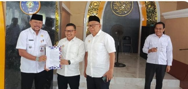 Penyerahan SK tersebut turut disaksikan jamaah yang baru saja menunaikan Shalat Dhuhur di masjid setempat.