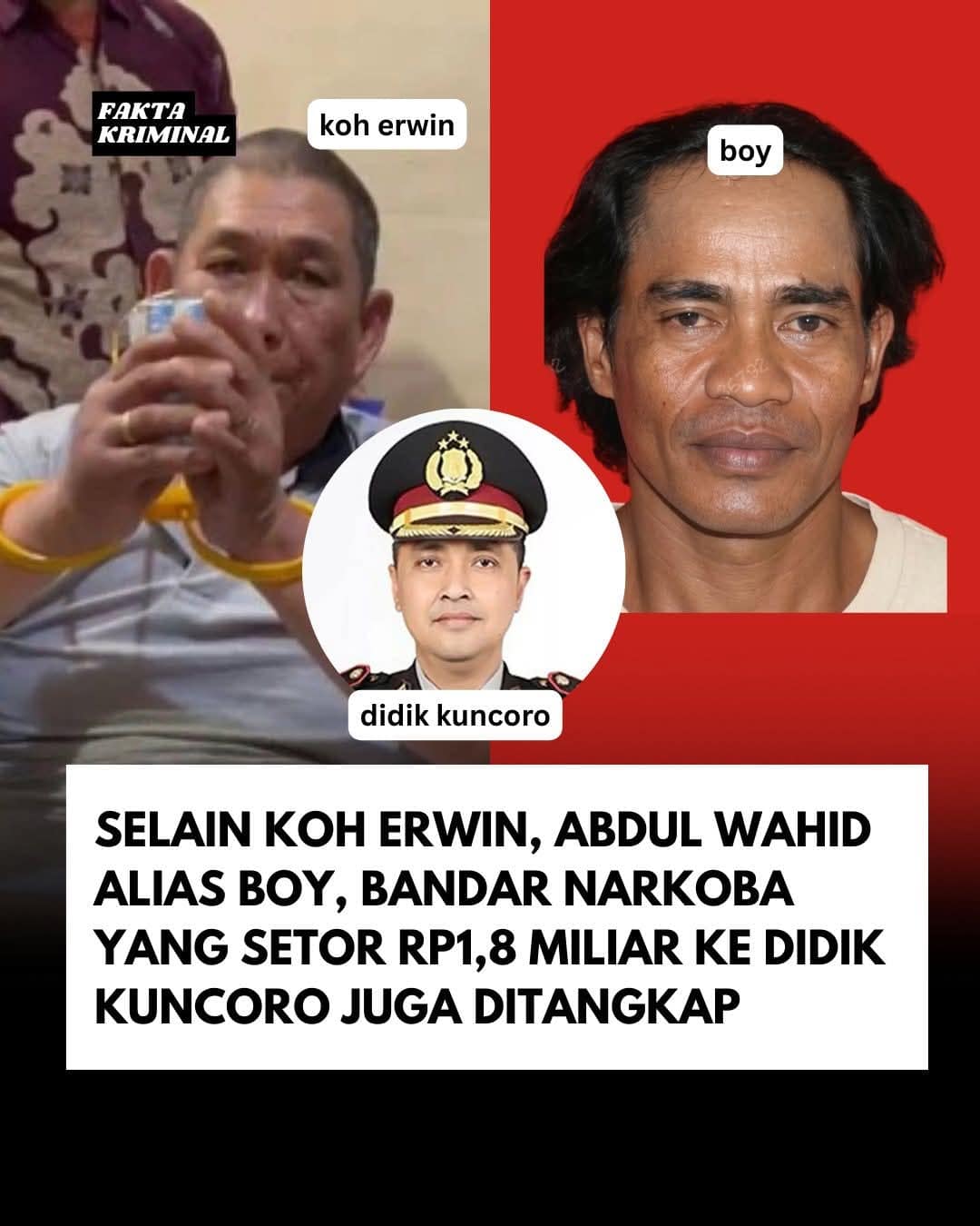 Sebelumnya, Koh Erwin juga telah ditangkap saat mencoba melarikan diri melalui jalur laut ilegal menuju Malaysia dari Tanjung Balai, Sumatera Utara. Sementara itu, AKBP Didik Putra Kuncoro kini telah dijatuhi sanksi pemecatan tidak dengan hormat (PTDH) dari Polri dan ditahan di rumah tahanan Bareskrim.
