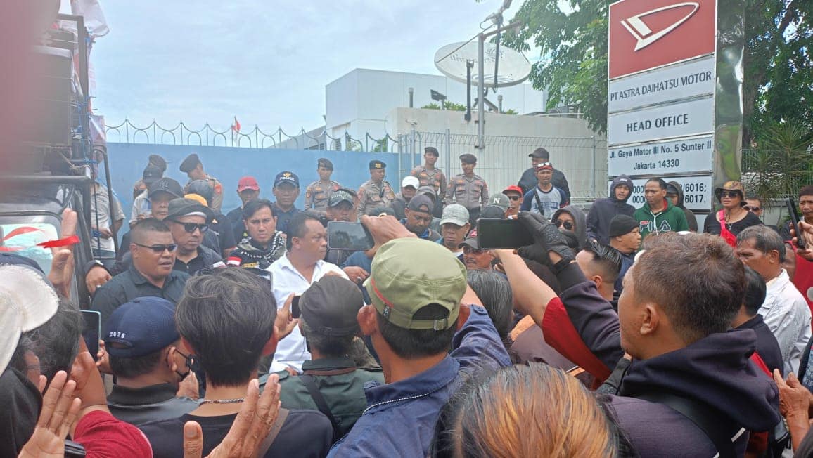 Ratusan massa dari organisasi masyarakat bersama perwakilan warga Jakarta Utara turun ke jalan mendesak PT Astra Daihatsu Motor (ADM) untuk menghentikan praktik rekrutmen yang dianggap tidak transparan dan merugikan putra-putri daerah.
