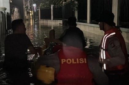 POLSUSWASKIANA – Jakarta Timur. Personel Dit Samapta Polda Metro Jaya melaksanakan evakuasi warga terdampak banjir di Jl. Pengantin Ali 7, Ciracas, Jakarta Timur, Sabtu (21/3/2026) pukul 20.30 WIB. Kegiatan tersebut dilakukan sebagai tindak lanjut atas panggilan masyarakat melalui layanan darurat Polri 110 terkait adanya warga yang membutuhkan bantuan di lokasi.